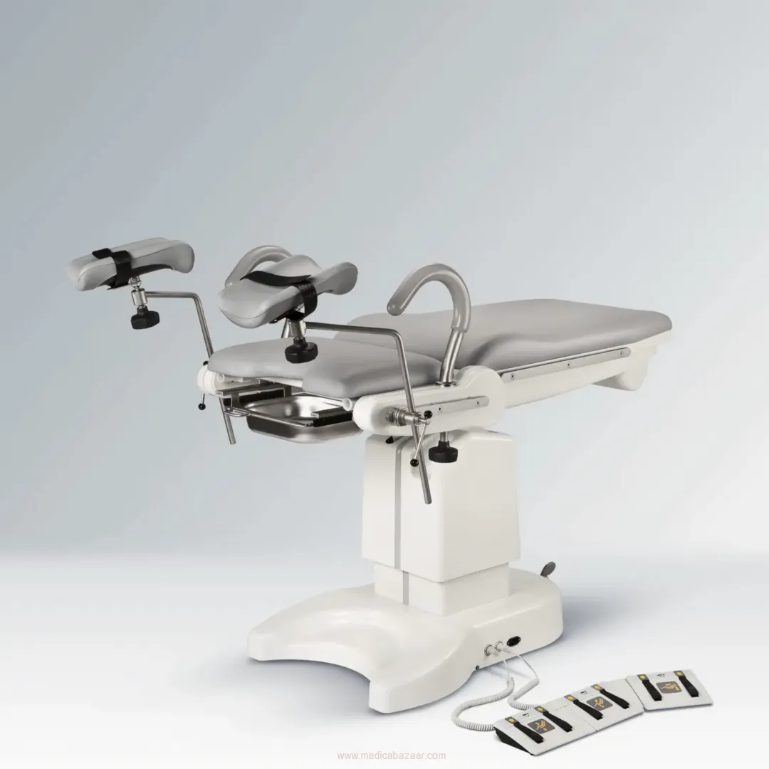 FG-04 gynaecological chair is equipped in electric actuators, which enable obtaining and maintaining the desired chair position. The chair is mounted on a mobile base with a central wheel lock system, which facilitates chair relocation within the office. Comprehensive accessories allow to choose the optimal version of the product.