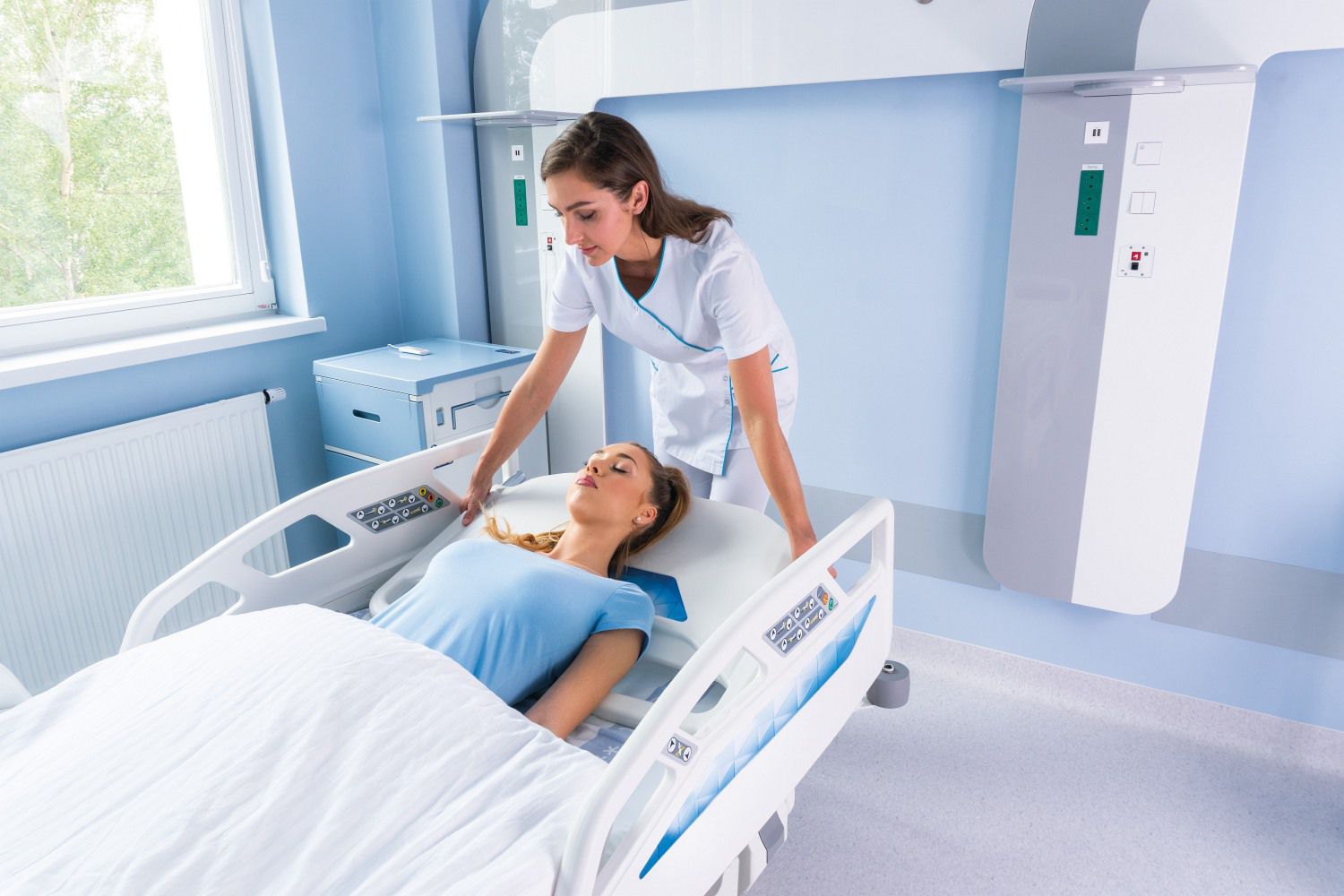 • A multitude of controllers - VEM central panel (very early mobilization), the patient's panel, the staff's panel, a wired remote control or a foot controller.