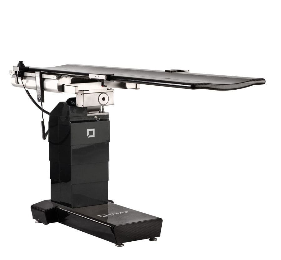The Famed FLARE table has an ultra-thin, fully transparent, floating tabletop made of carbon fiber with the TotalClear™ technology, which guarantees very clean, artifact-free images and the highest translucency parameter on the market that help to reduce radiation dose that affects the patient and medical personnel. TotalClear™ tabletop facilitates the correct placement of the patient (floating tabletop with a joystick) and it is useful during cardiovascular surgery, neurosurgery, urological surgery, orthopedic surgery, pain management therapy, and endoscopic procedures.