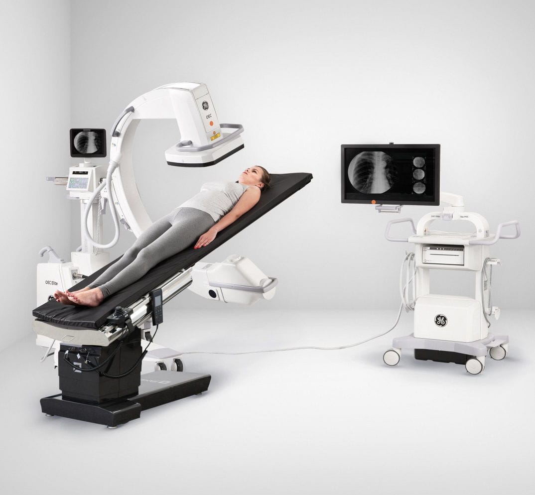 • Ergonomic tabletop and low base provide plenty of space for easy maneuvering of C-arm;