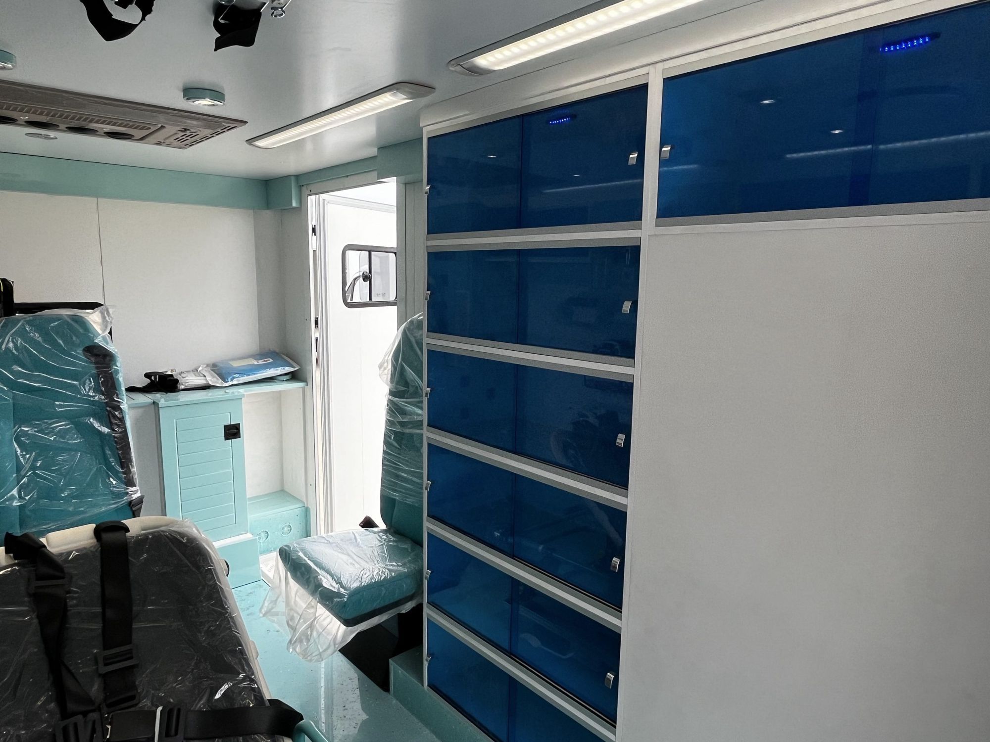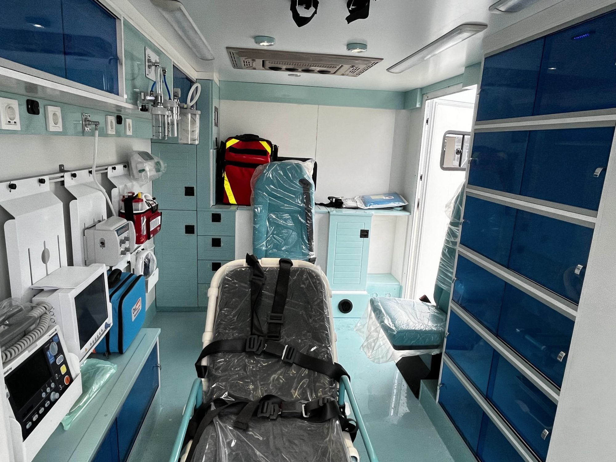 The Mercedes Box Type Ambulance( I ) was designed to provide more interior space for the rescued patient. Doctors frequently require a large amount of space to treat their patients. The box is assembled on a Mercedes chassis and it is made up of lightweight polyurethane panels with high strength and great insulation, which successfully minimizes heat, cold, and noise transfer.