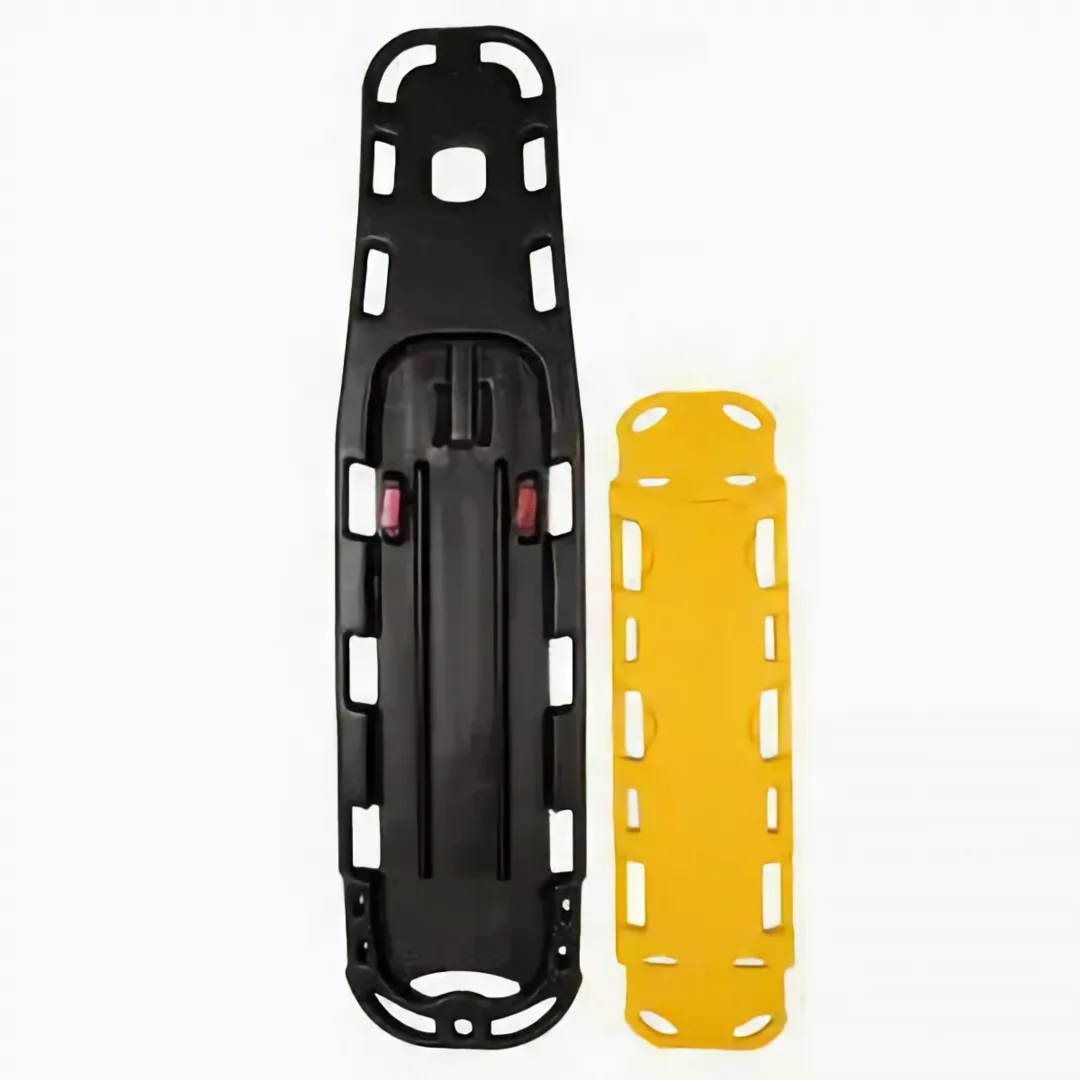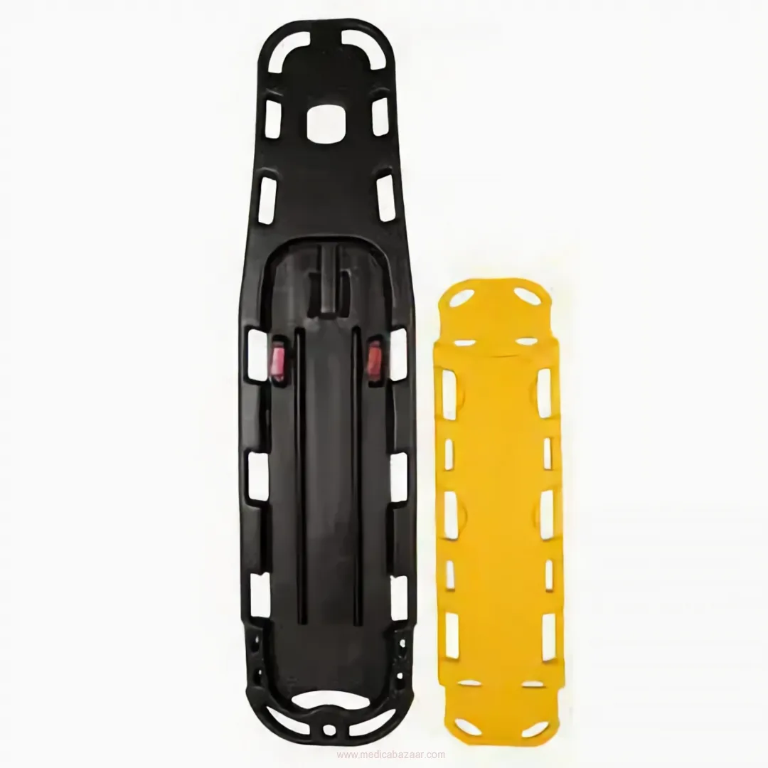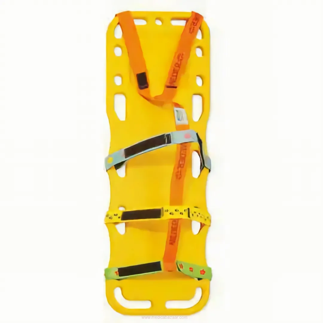 The spine board, which designed as being proper to use in ambulances and many other kinds of health areas, manufactured from ABS plastic material which has high resistance against dashes, corrasions, and burning.