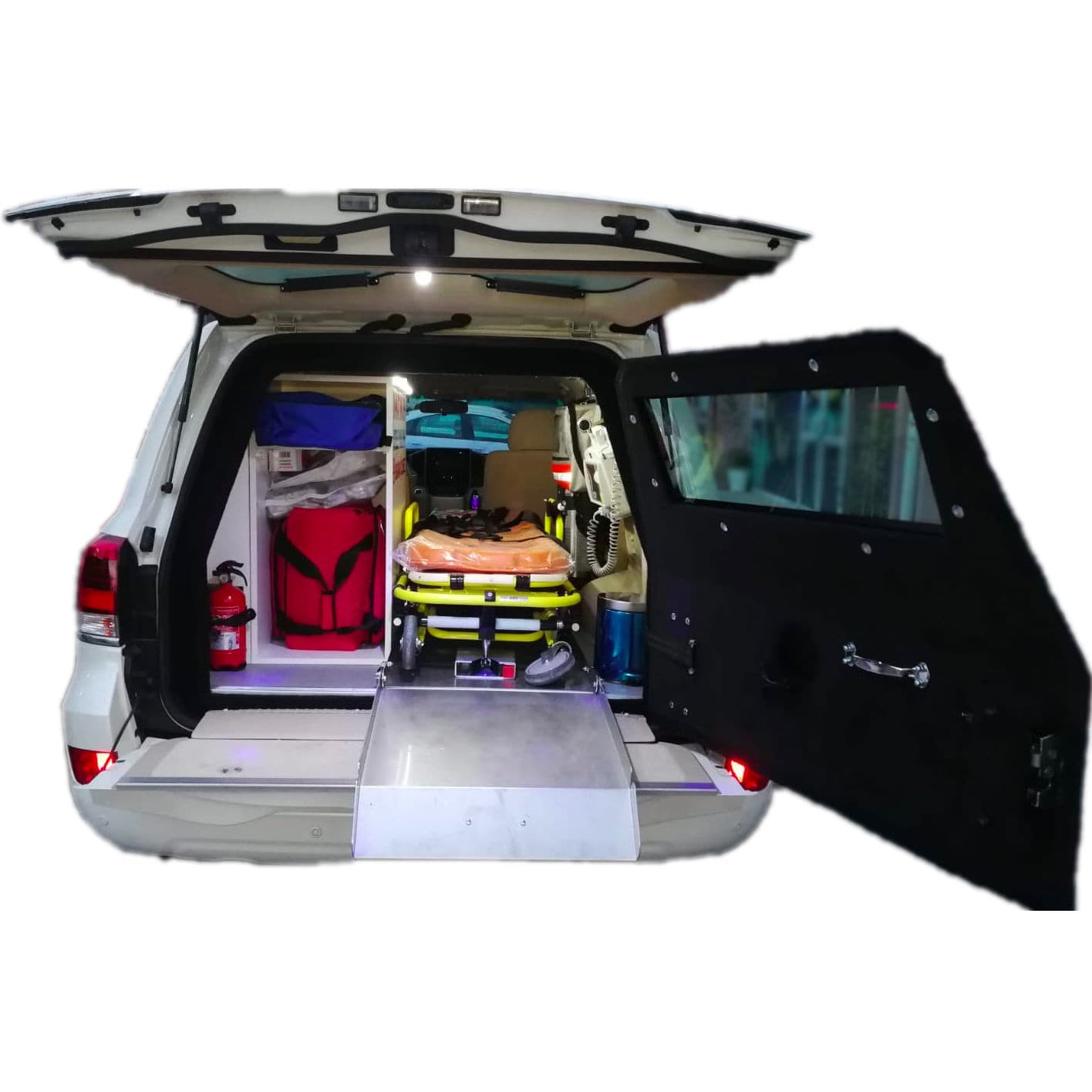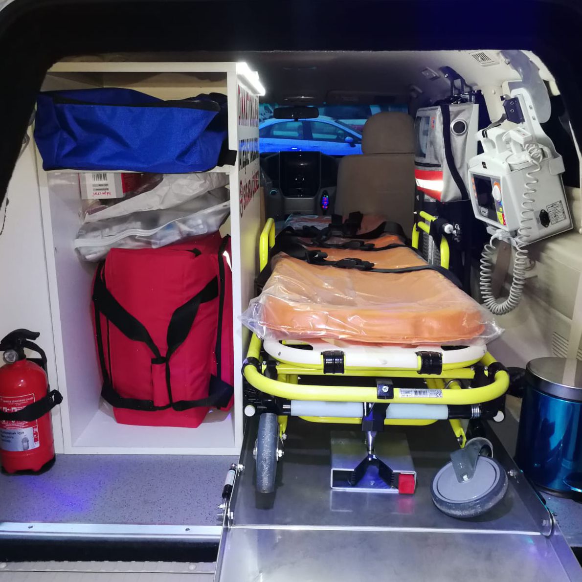 The ambulances’ glasses are completely armored. Wheels are filled with a filling material. It is able to head 30 kilometers after an explosion. There are a main stretcher and the main stretcher platform. There is a companion sitting group for 3 individuals based on the right side of the patient cabin. Under the companion sitting group, there is a decent area in order to store the materials. There are a cupboard and an oxygen system on the left side of the patient cabin; defibrillator, ventilator, and a vacuum aspirator on the patient head part.