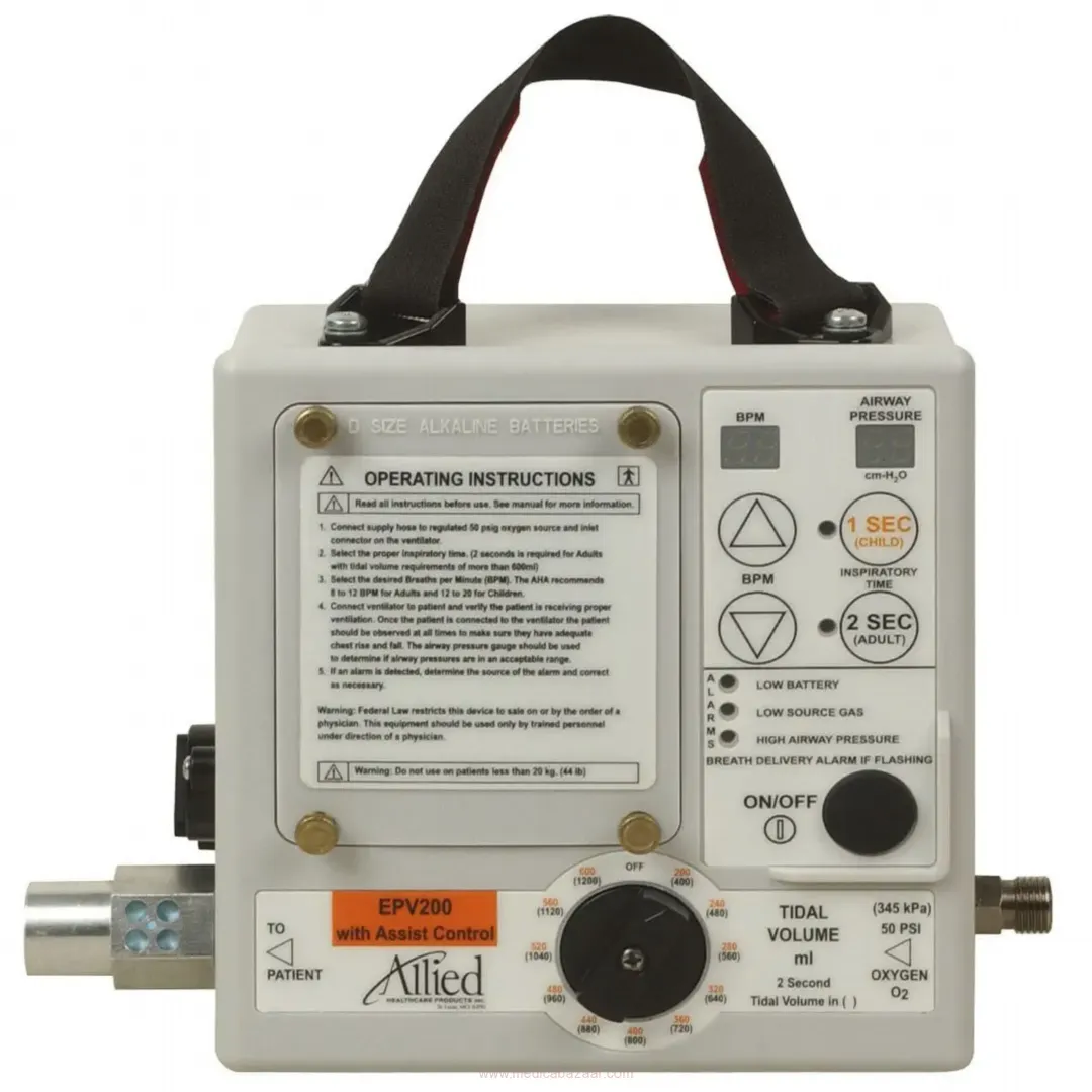 Simple, lightweight, robust and affordable, the EPV200 with Assist-Control is a portable mechanical ventilator designed to provide effective ventilation for intubated or non-intubated patients, maximizing medical surge response during the initial stages of a mass casualty event.