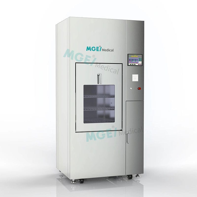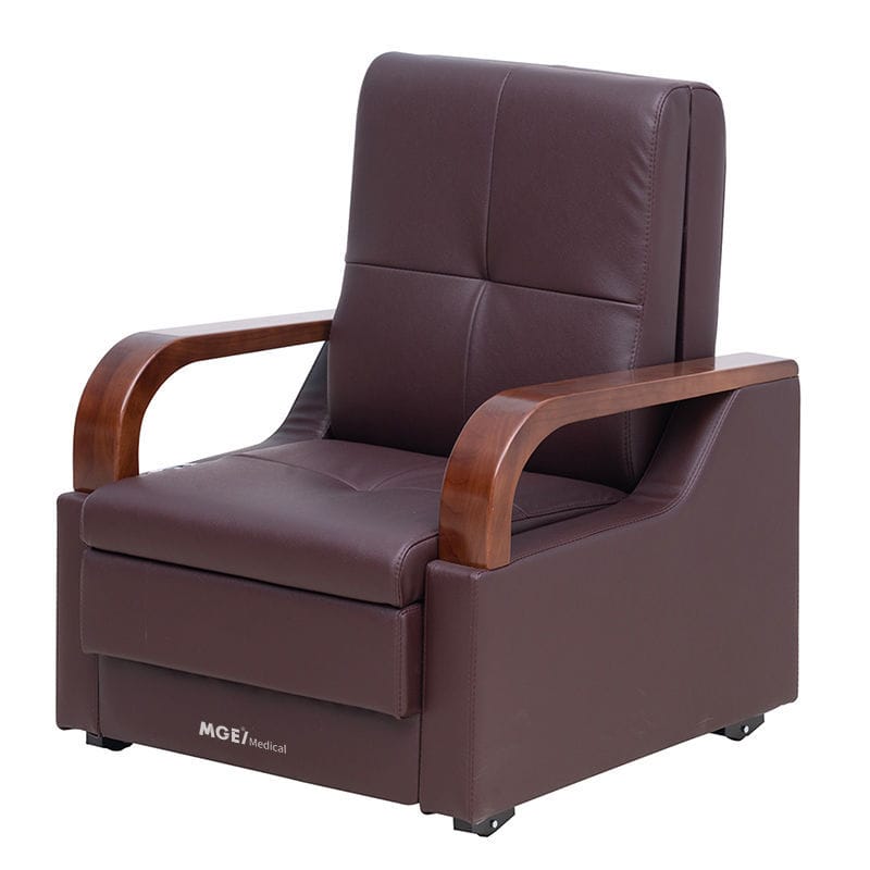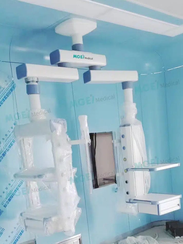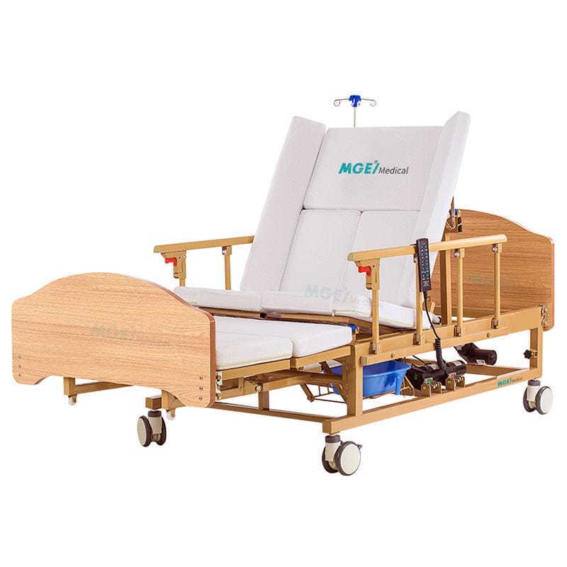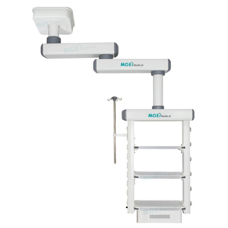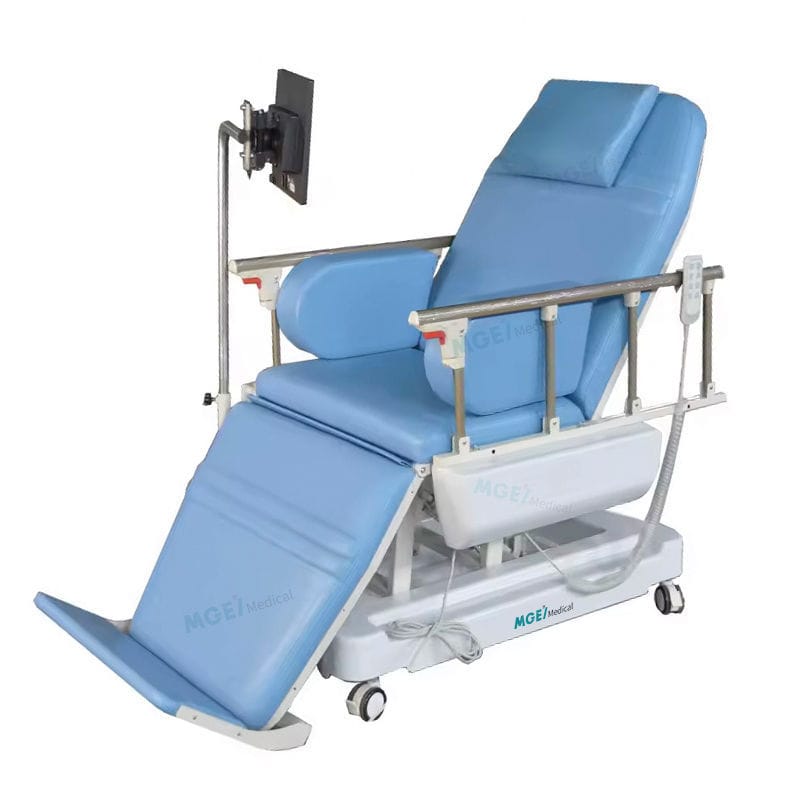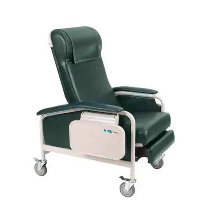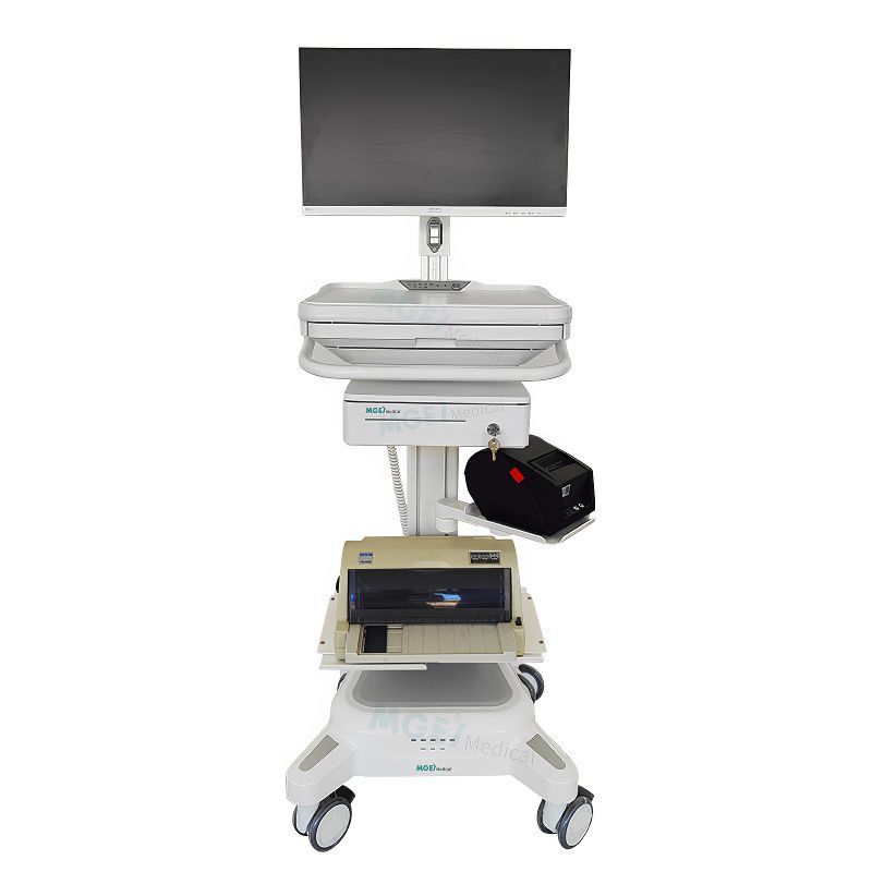 Right-Side Features: Retractable IV pole, large rotating sharps container, and dual ABS waste bins for separating medical waste.