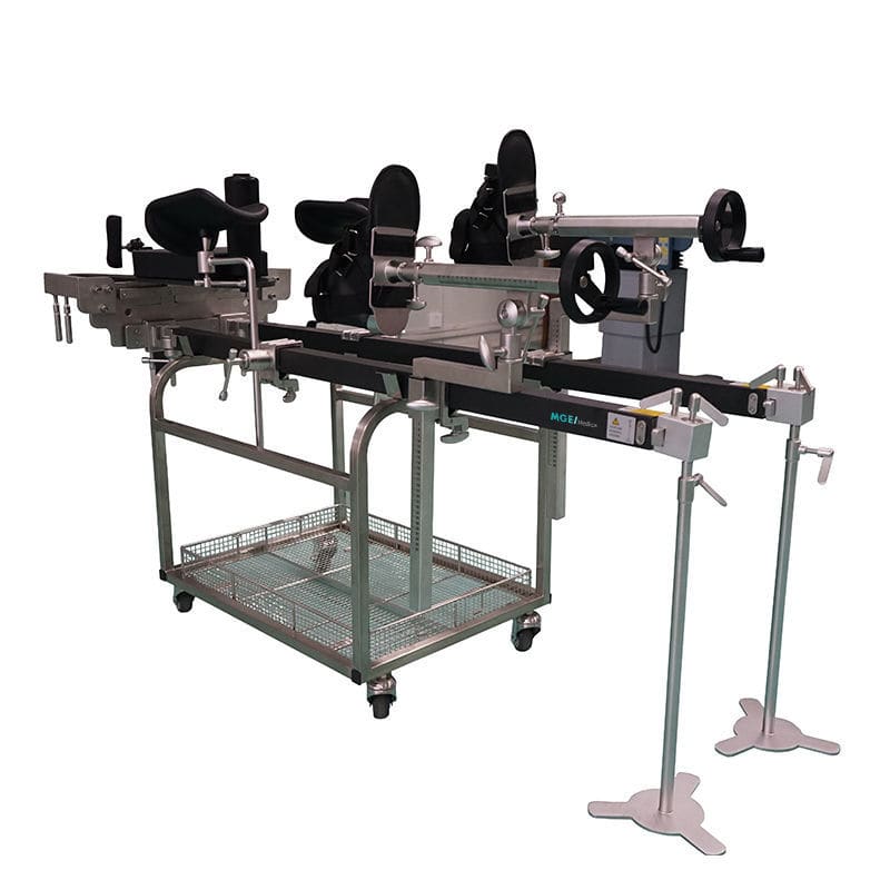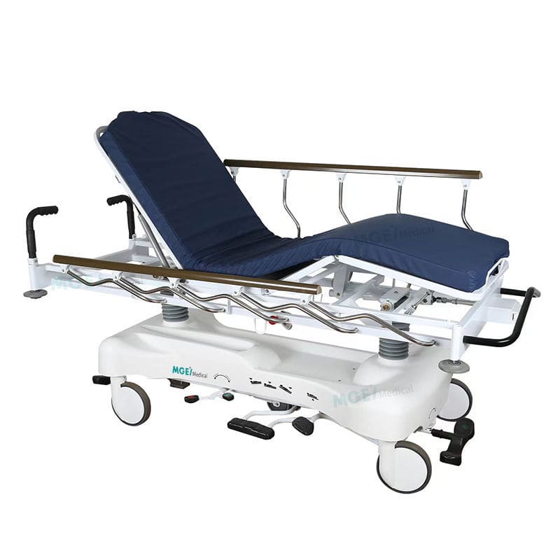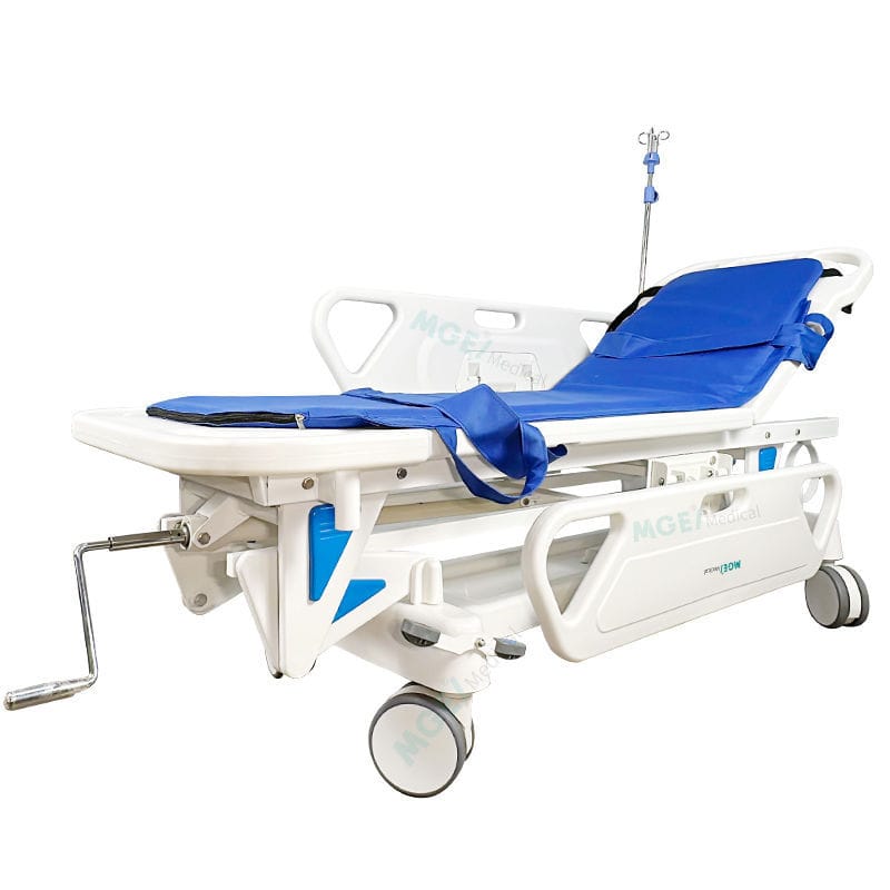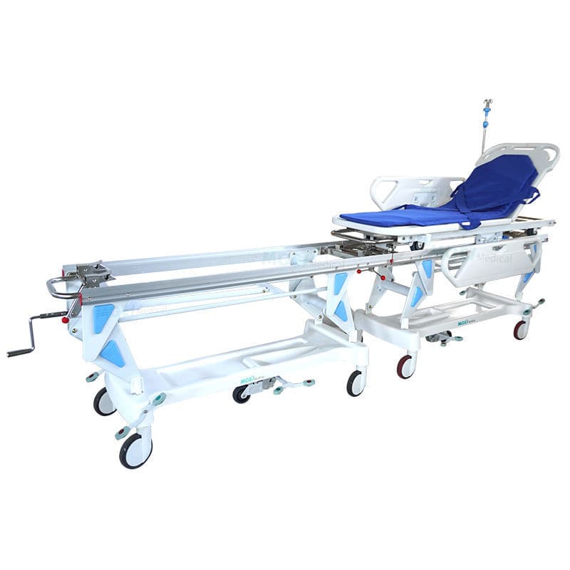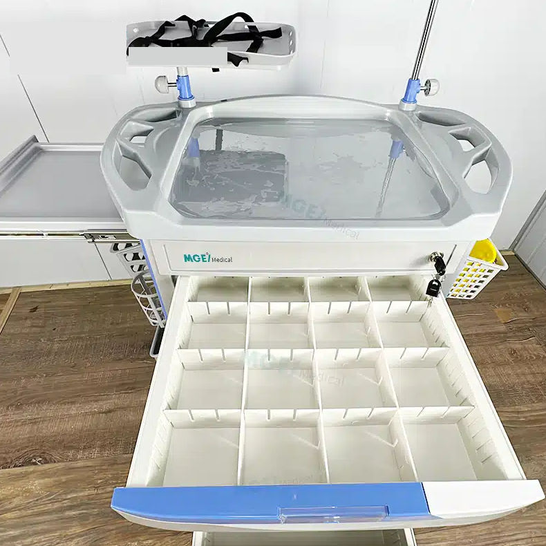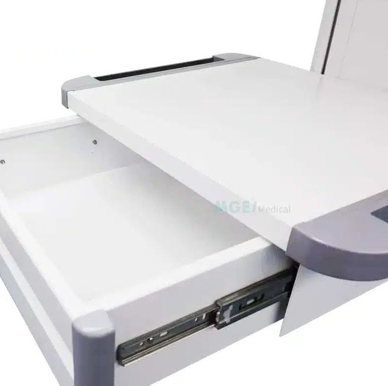 Left-Side Features: Includes a defibrillator platform (interchangeable with the IV pole), a hidden retractable workbench, and a utility box for additional storage.