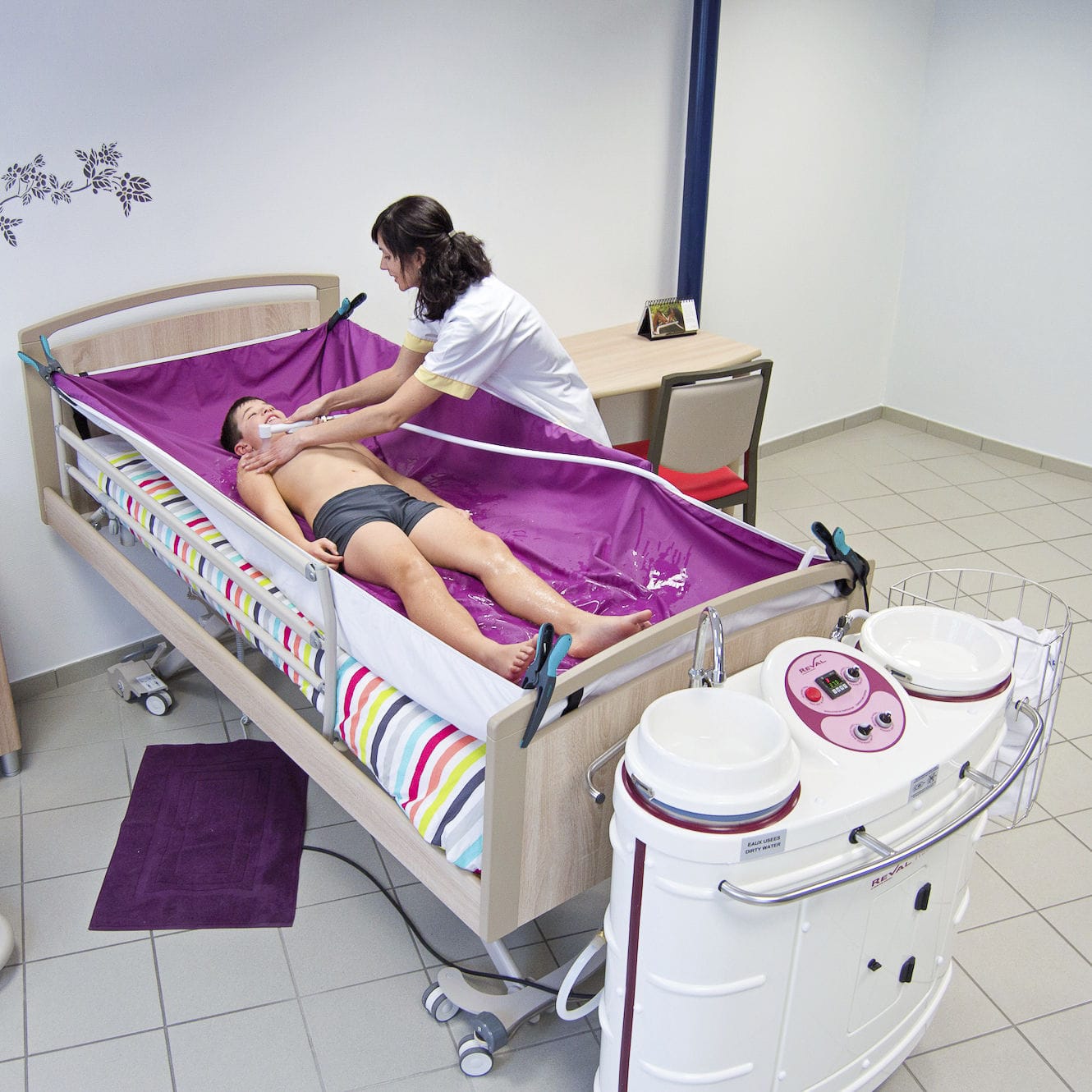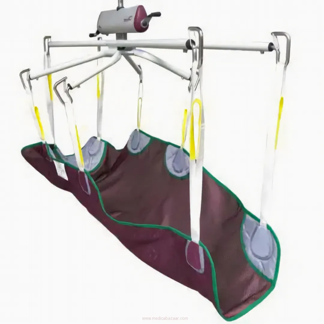 The 8pts Stretcher is intended to lift and transfer the patients in a horizontal position hanks to a sling. Common areas of use are in surgical wards, but even in intensive care wards and X-ray departments. A mechanical Leveller makes easier the regulation of the centre of gravity during lifting.