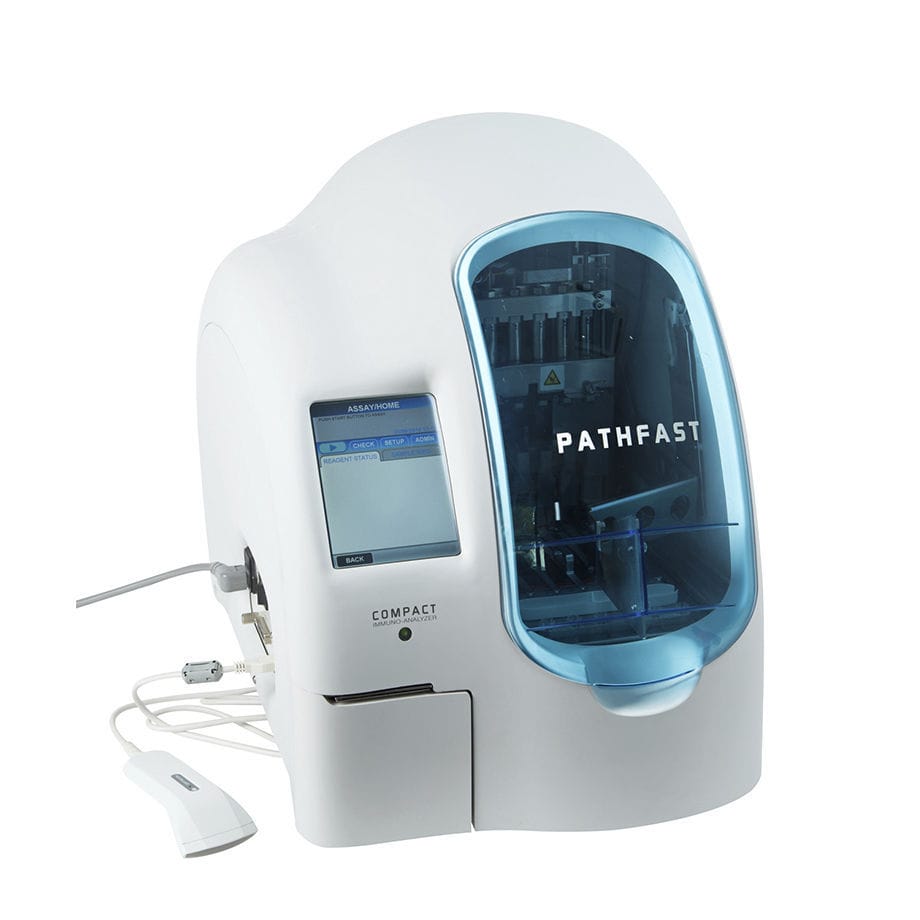The PATHFAST™ system combines the accuracy of a full-scale lab analyzer with the flexibility of a mobile solution. Its compact design and low weight makes PATHFAST™ the ideal analysis system in laboratories, hospitals and medical offices available wherever fast quantitative results (with full-scale lab quality) are required at the point of care. With its space-saving design and large degree of flexibility PATHFAST™ is also an ideal supplement or back-up system in central labs. It can be available at any time (24 hrs per day) without interfering with the processes of routine analysis.