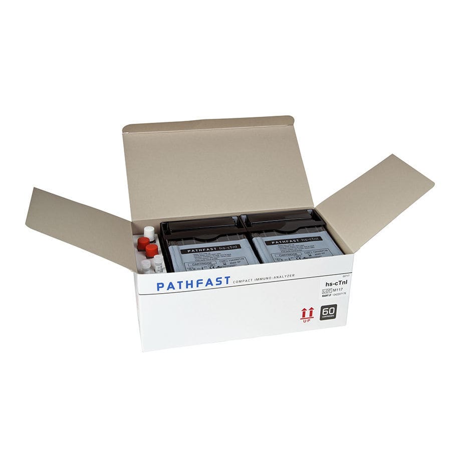PATHFAST™ hs-cTnI is an immunoassay for the in vitro quantitative determination of cardiac Troponin I (cTnI) in human anticoagulated whole blood and plasma on the PATHFAST™ analyzer. PATHFAST™ hs-cTnI can be used as an aid in the diagnosis of acute myocardial infarction and in the risk stratification of patients presenting with acute coronary syndromes. In addition to the diagnosis of AMI, detection of low cardiac troponin levels may make it possible to predict information (risk stratification) in terms of short- and long term mortality of patients. Low concentrations of cTnI can be analysed by using high sensitivity cardiac troponin (hs-cTnI) assays which meet the criteria defined by IFCC and ESC. PATHFAST™ provides high accuracy and precision of test results similar to central lab analyser, combined with the flexibility of a POCT assay below 17 minutes out of whole blood and plasma by all in one cartridge solution. The new PATHFAST™ hs-cTnI assay fits for the recommen[1]dations on the IFCC and ESC guidelines for the early detection of AMI.