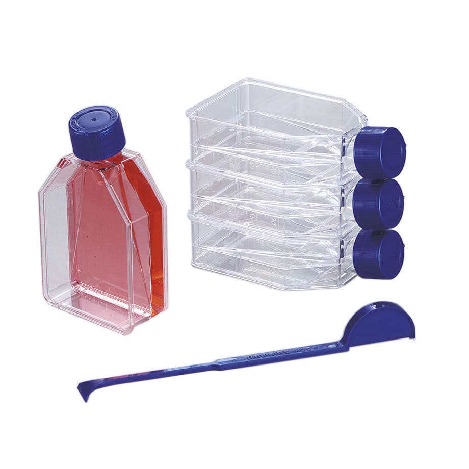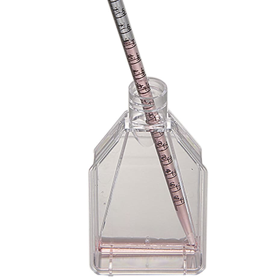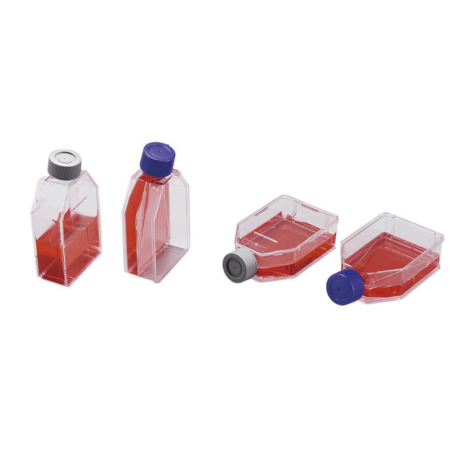 When transporting cells in live condition, there is a risk that culture medium in a flask gets shaken and cells scale. By filling a flask with culture medium it can be transported in safety without this risk. Yet, this will make the amount of culture medium increase and costs more in conventional flasks. To solve this, we created a revolutionary form which minimizes the amount of culture medium used for transport without changing its incubation area.