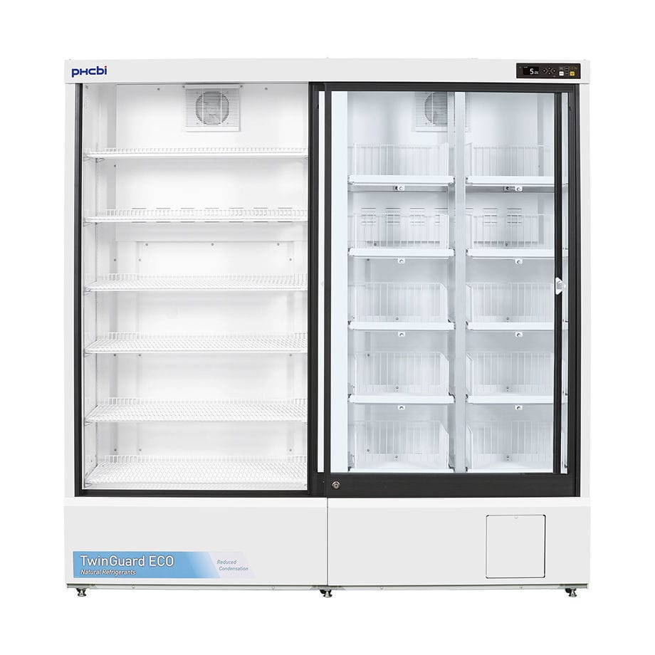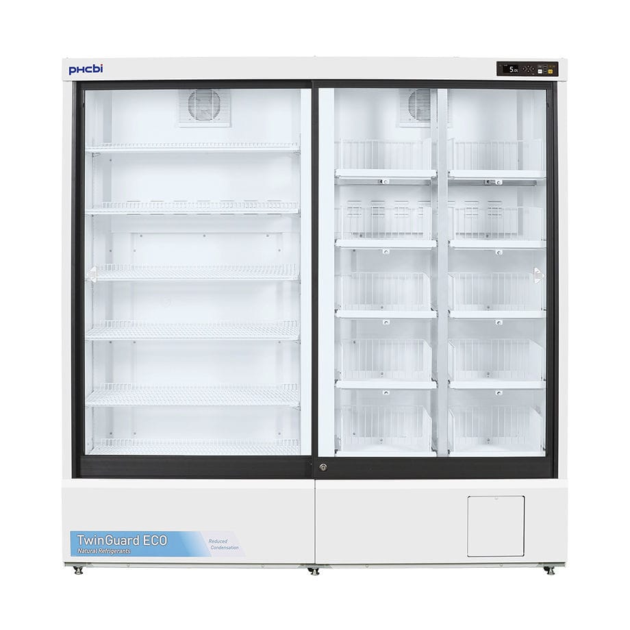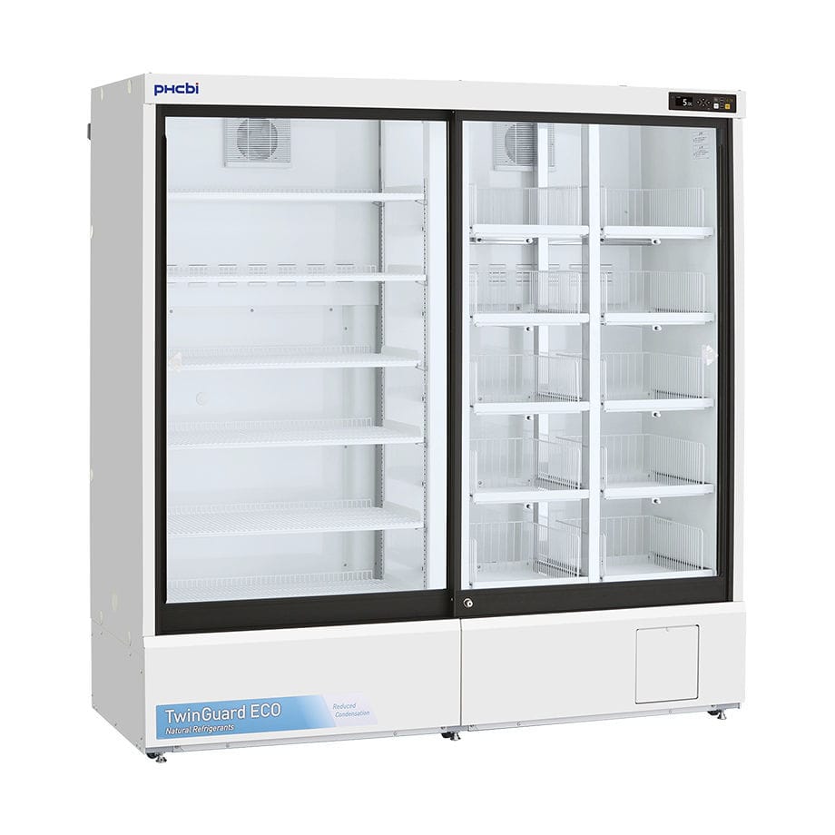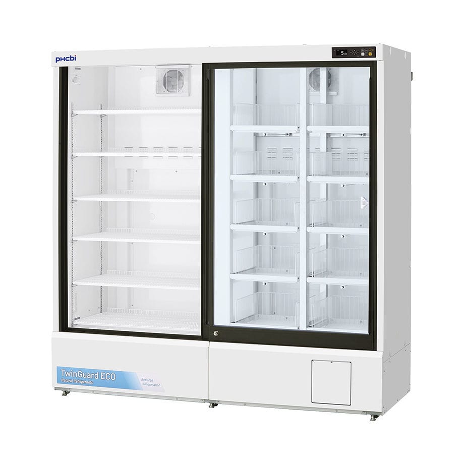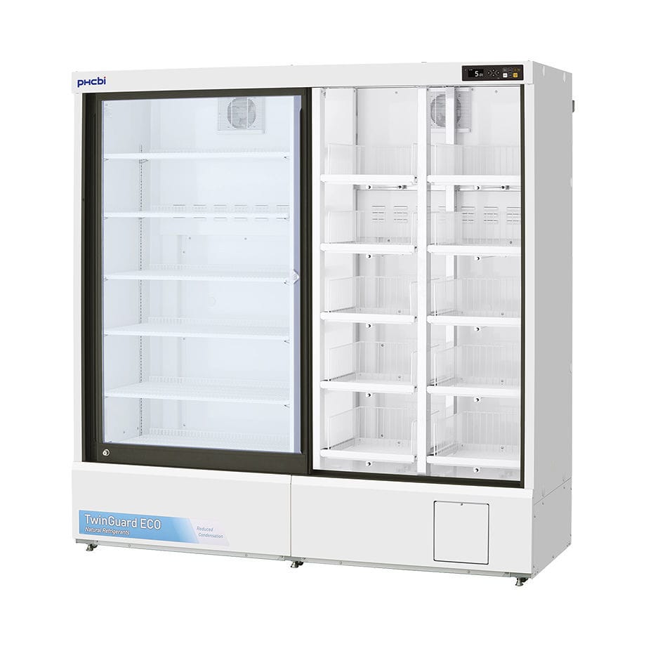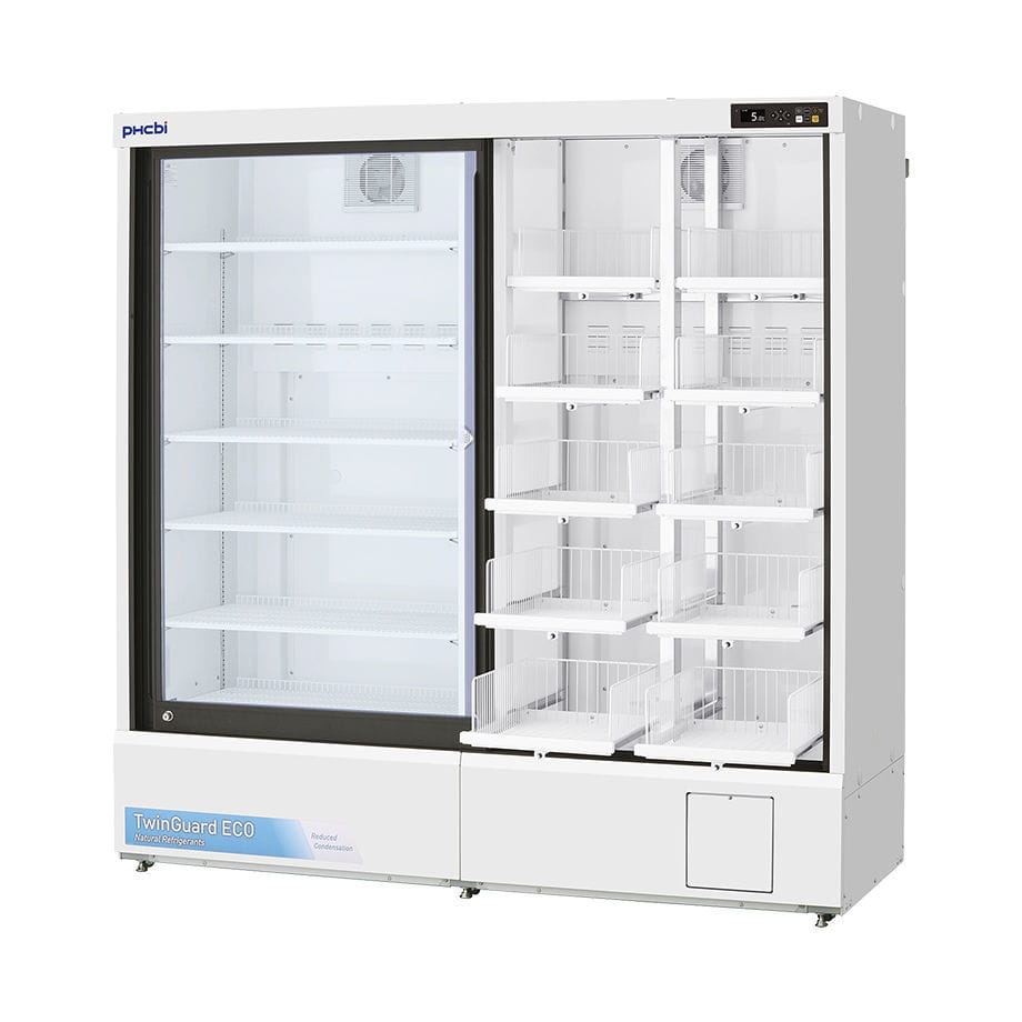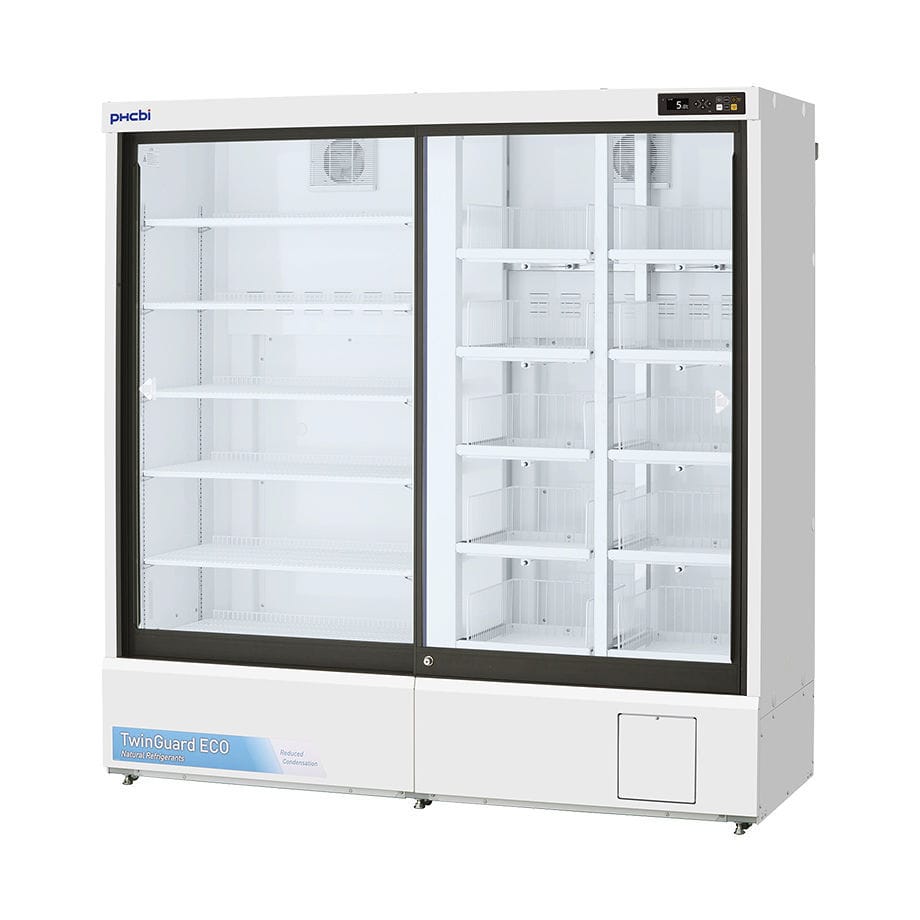 Our MPR-S1201RXH-PE Twinguard Pharmaceutical Refrigerator with sliding door, perfectly preserve samples, reagents, and pharmaceuticals through high-reliability temperature control. Use of natural HC refrigerants combined with inverter controlled compressors, reduces power consumption by approx. 77% compared with existing models.