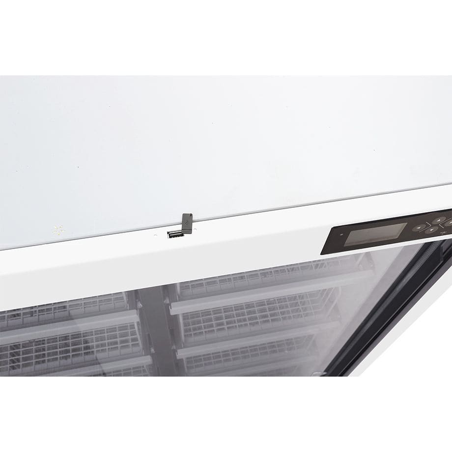 We also offer the MPR-S1201XH-PE, this pharmaceutical refrigerator with sliding door contains 12 shelves instead of 6 shelves and 10 drawers like the MPR-1201RXH-PE.
