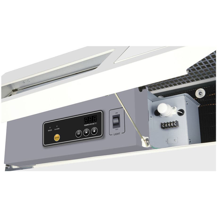 A filterless condenser cuts down on cleaning maintenance. Also, all glass doors now include a protective film to prevent shattering in the event of accidental collisions.
